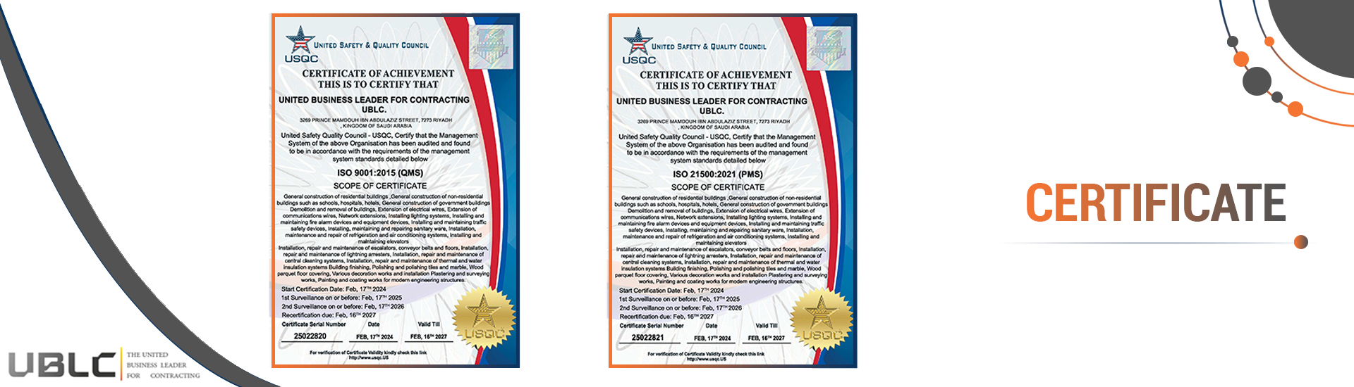 Our Certificate